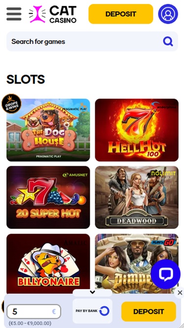 Existem vários bônus baseados em depósitos, distribuídos pelos cinco primeiros depósitos. Além disso, o CatCasino oferece promoções exclusivas que podem ser desbloqueadas por meio de um código promocional especial, bem como diversos torneios.