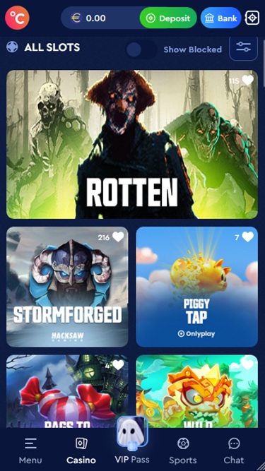 Na parte superior da página principal, você pode acessar um menu horizontal que contém todas as categorias de jogos, como caça-níqueis, programas de jogos, jogos com crupiê ao vivo , jogos de mesa e jogos instantâneos. O menu inclui páginas detalhadas sobre o sistema VIP , recompensas e bônus.