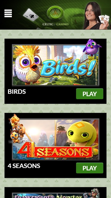 O Celtic Casino é alimentado por BetSoft, Visionary iGaming and Distance Gaming e seus jogos são fornecidos por meio de uma plataforma baseada na web.