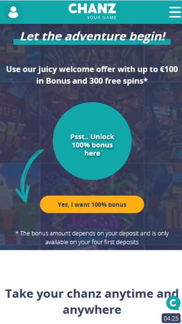 Abaixo está uma lista das promoções atualmente oferecidas no Chanz Casino.