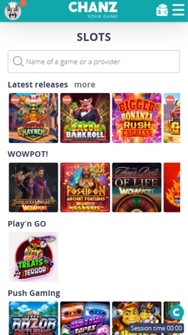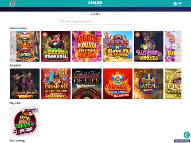 O Chanz Casino é operado pela Microgaming, Net Entertainment, Big Time Gaming, Evolution Gaming, Genesis Gaming, Play'n GO, Rabcat, Thunderkick, Yggdrasil, Booming Games, Pragmatic Play, Red Tiger Gaming, Skillzzgaming, Fantasma Games, Triple Edge Studios, Northern Lights Gaming, Stormcraft Studios, Switch Studios, Bulletproof Games, All41 Studios, Gluck Games, Gameburger Studios, Pulse 8 Studios, Neon Valley Studios, Golden Rock Studios, SpinPlay Games, Real Dealer Studios, GONG Gaming, Buck Stakes Entertainment, Games Global, 2by2 Gaming, Push Gaming, Old Skool Studios, Foxium, Just For The Win, Reflex Gaming, Storm Gaming Technology, PearFiction Studios, Wild Streak Gaming, Slingshot Studios, Fortune Factory Studios, 4ThePlayer, AvatarUX, Gamevy, Crazy Tooth Studio, ReelPlay, Alchemy Gaming, Plank Gaming, Snowborn Games, Boomerang Studios, Hacksaw Gaming, Gold Coin Studios, Bang Bang Games, Half Pixel Studios, Peter And Sons, Eurostar Studios, Aurum Signature Studios, Area Vegas, Wishbone Games, Circular Arrow, HammerTime Games, INO Games, Nailed It! Games, Neko Games, Reel Kingdom and Oros Gaming e seus jogos são oferecidos por meio de uma plataforma de jogo instantâneo baseada na web, que permite aos jogadores se cadastrarem, depositarem e jogarem diretamente pelo navegador da internet. O cassino também é compatível com dispositivos móveis, permitindo que os jogadores participem da ação por meio de seus smartphones e tablets.