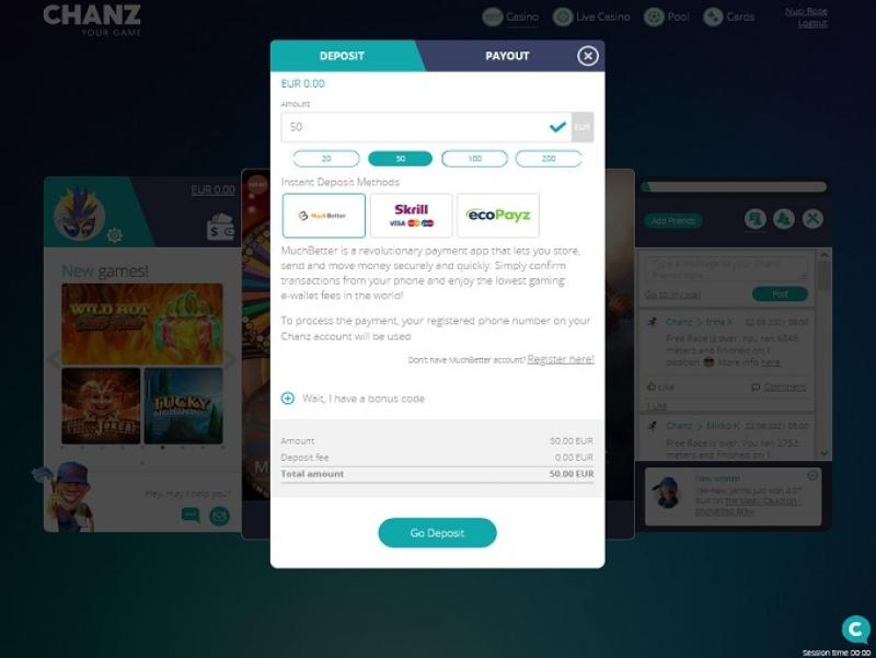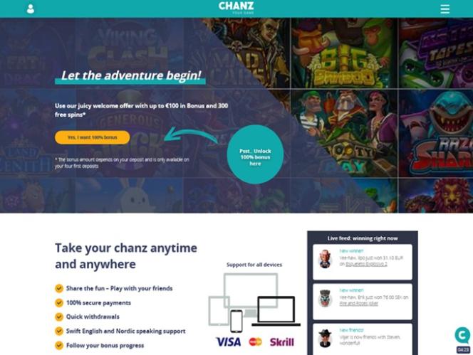 O Chanz Casino é um site de apostas online focado no mercado europeu, fundado em 2014. O cassino pertence e é operado pela Dreambox Games e está sediado na Estônia, onde se tornou conhecido por seus pagamentos rápidos, excelentes condições de bônus e ampla biblioteca de jogos, características que fazem do Chanz Casino um excelente cassino que merece sua atenção.