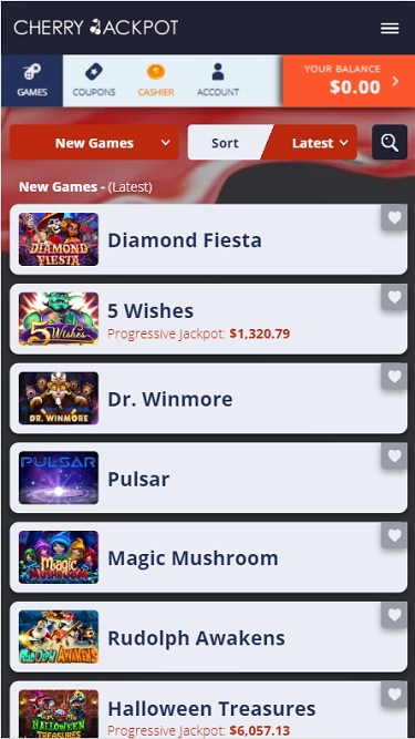 O Cherry Jackpot oferece uma boa variedade de slots, incluindo toda a gama de slots clássicos e de vídeo da RTG. O casino também disponibiliza jackpots progressivos em muitos dos seus jogos, que oferecem prémios enormes. O jogo também está disponível em dispositivos móveis, para que possa jogar nas suas slots em qualquer lugar.