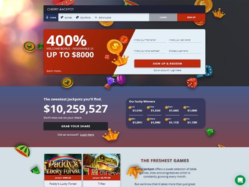 O Cherry Jackpot utiliza o sistema de recompensas padrão da RTG. Os jogadores ganham 1 ponto a cada US$ 10 apostados, e 100 pontos podem ser trocados por US$ 1 em dinheiro no cassino.