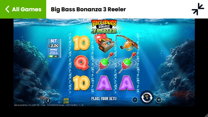 Fishin' Frenzy , Big Bass Splash, Leprechaun's Luck Cash Collect, Fishin' Frenzy Even Bigger Fish, Big Bass Bonanza, Chilli Heat, Fluffy Favorites, Rainbow Riches, Sweet Bonanza 1000, Big Bass Vegas Double Down Deluxe, Rich Wilde and the Book of Dead, Queen of the Pyramids Mega Cash Collect, Eye of Horus, Reel King Mega e Rainbow Riches Pick'N Mix.