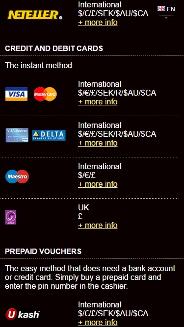 Demorei uma eternidade para sacar neste cassino. Existem cassinos Playtech melhores por aí. 9 dias para verificar meus documentos e mais 3 a 5 dias antes de cair na minha conta. No total, levou 2 semanas! O CS me avisou que levaria apenas 2 a 3 dias para saques no futuro, mas não sei se voltarei a usá-los.