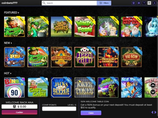 O Coinbets777 Casino é um site de jogos online voltado principalmente para jogadores dos EUA, mas jogadores de outros países também são bem-vindos. Observe que o cassino não possuía licença para operar jogos de azar no momento da redação desta avaliação.