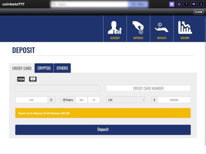 Note que depósitos e saques são gratuitos e que os saques em criptomoedas são instantâneos. Devido à natureza dos pagamentos em criptomoedas, os jogadores devem sempre estar atentos aos requisitos mínimos de depósito do cassino. Não cumprir esses requisitos pode resultar na perda dos fundos depositados. Além disso, lembre-se de que tanto o valor mínimo de depósito quanto o valor mínimo de saque são um pouco mais altos do que os padrões da indústria de jogos online.