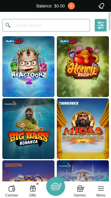 A biblioteca do cassino possui duas seções – cassino e dealers ao vivo, cada uma com subcategorias e uma caixa de pesquisa que é útil para jogadores que procuram um lançamento específico.