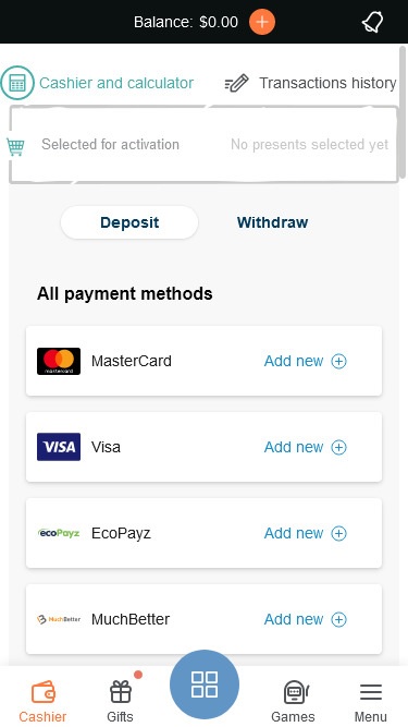 A plataforma do cassino foi projetada para ser tão perfeitamente organizada. Tudo está em ordem e tão bem arrumado que chega a parecer um pouco excessivo. O cabeçalho e o rodapé são fixos. O canto superior direito do cabeçalho contém um botão de localização e o menu principal que, ao ser clicado, se expande em um menu com várias opções suspensas.