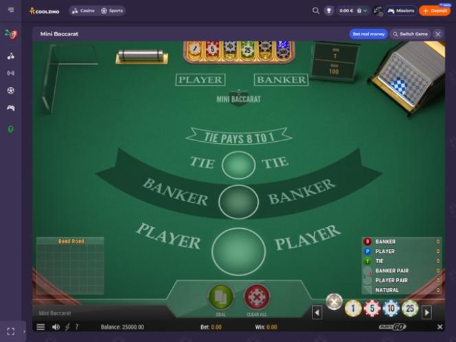 Os jogos de mesa também são uma parte importante da biblioteca de jogos da Coolzino. Roleta , blackjack , bacará e pôquer estão todos disponíveis e podem ser jogados em ambientes digitais ou contra crupiês ao vivo. Algumas variantes populares incluem Lightning Blackjack, Immersive Roulette, Caribbean Stud Poker e Baccarat Squeeze.
