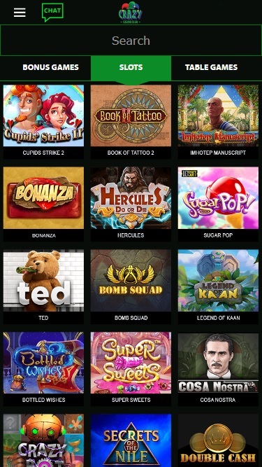 O Crazy Casino oferece uma enorme variedade de slots, com jogos de vídeo de desenvolvedores renomados como Nektan, BetSoft, NextGen, Thunderkick e muitos outros. Os jogadores encontrarão uma vasta seleção de jogos com diversos temas, além de jackpots progressivos que podem pagar milhares de dólares de uma só vez.