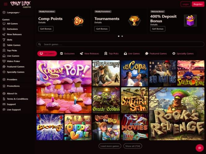 O Crazy Luck Casino é alimentado por Rival e o software do cassino está disponível para download, bem como por meio de uma plataforma online.Outros jogos