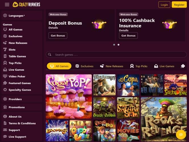 CrazyWinners também é lar de 50 Outros jogos listados abaixo: