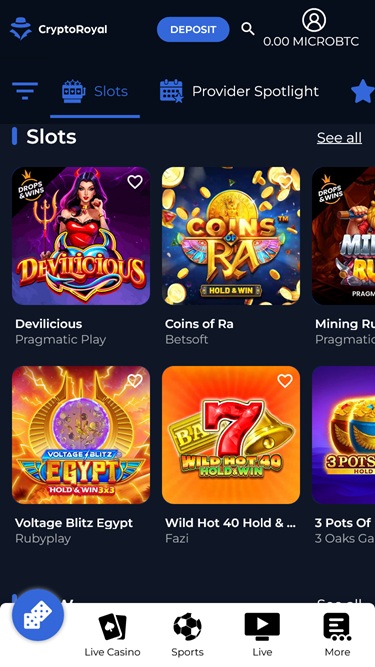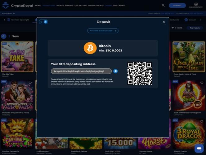 Mas isso não é tudo. Este cassino online também permite que os jogadores apostem em diversos esportes e partidas de eSports do mundo todo. A seção de apostas esportivas da CryptoRoyal tem tudo o que você pode desejar, totalmente equipada com recursos modernos, opções de apostas e a possibilidade de apostas ao vivo.