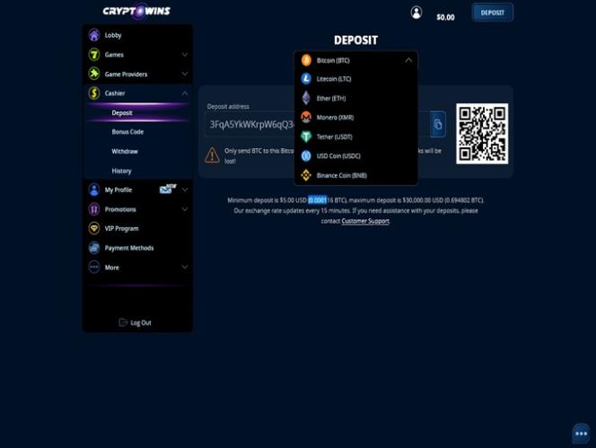 Mas um processo de cadastro fácil e um visual atraente não são as únicas coisas que os jogadores modernos procuram. Para os apostadores modernos, é importante poder contar com métodos de pagamento seguros que ofereçam transações rápidas. As criptomoedas são uma das opções de pagamento mais rápidas, tanto para depósitos quanto para saques . E, como o nome do cassino sugere, aqui tudo gira em torno das criptomoedas!