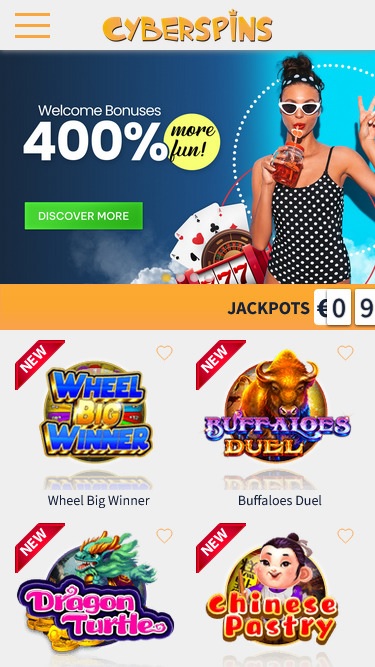 O CyberSpins é operado pela BetSoft, Rival, Saucify, Vista Gaming, GameArt, Mobilots, Concept Gaming, Mascot Gaming, Fresh Deck Studios, Mancala Gaming, KA Gaming, Eurasian Gaming and Mr Slotty e os jogos são fornecidos por meio de uma plataforma online acessível pelo seu navegador de internet favorito. O site tem um visual bastante agradável e oferece suporte integrado para dispositivos móveis, permitindo que você jogue em seu smartphone ou tablet.