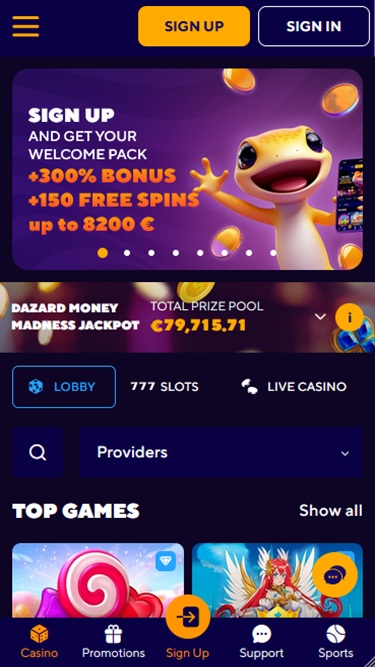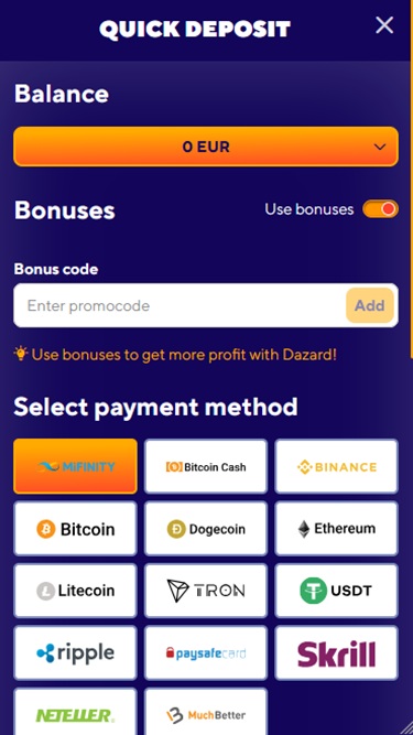 A lista de bônus não é longa, mas é generosa. O Dazard oferece um bônus de boas-vindas que inclui um número considerável de rodadas extras para novos jogadores.