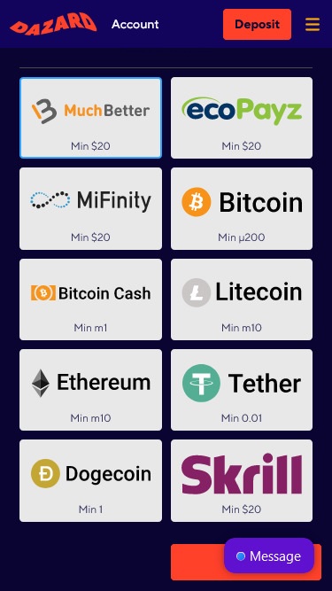 Os jogadores recebem pontos DAZ ao jogar qualquer um dos jogos de caça-níqueis do Dazard Casino. Conforme o número de apostas aumenta, o número de pontos DAZ também aumenta. Os pontos não expiram e podem ser trocados por um bônus em dinheiro sempre que o jogador desejar.