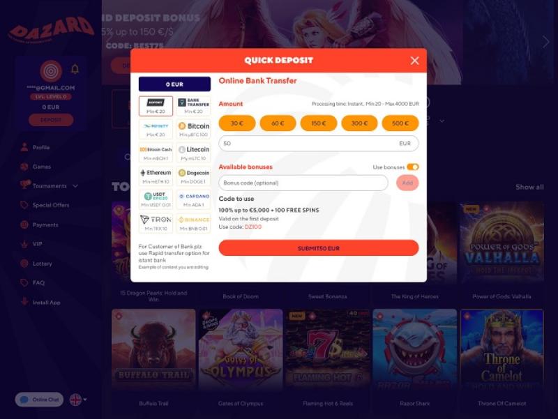 Resumindo os fatos básicos: o cassino Dazard merece muita atenção!