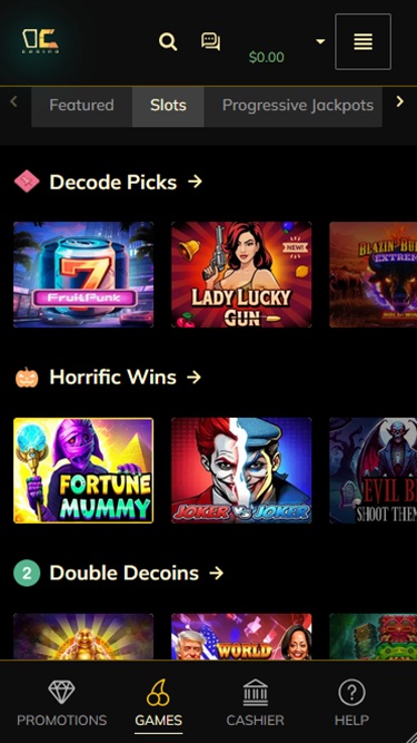 À primeira vista, este destino de jogos de azar online parece muito convidativo e adequado para vários tipos de jogadores, especialmente os modernos que procuram cassinos online que aceitam criptomoedas e possuem recursos inovadores. No Decode, os jogadores poderão experimentar jogos de crash populares como Vortex, Aero, CrashX, CrashX Football Edition, Mines, Dogs' Street, Towers, Neko, Hamsta, Limbo Rider, Fury Stairs, Fruit Towers, Bubbles e muitos outros.