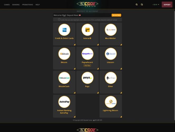 A Decode oferece excelentes limites mínimos de depósito, mas limites mínimos de saque elevados.