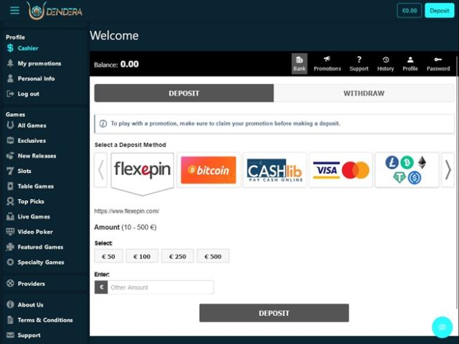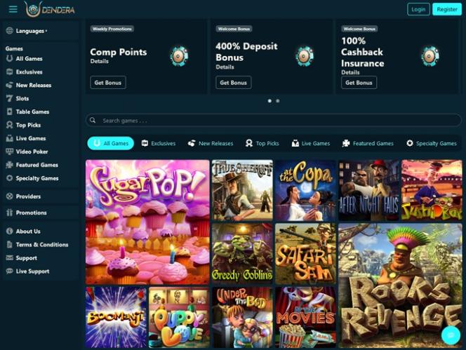 O Dendera Casino é alimentado por BetSoft, Genesis Gaming, Rival, Saucify, Vivo Gaming, Arrows Edge, Radi8 Games, Fresh Deck Studios, Woohoo Games, Qora Games, Genii, Dragon Gaming and Dragoon Soft e seus jogos estão disponíveis por meio de um software para download, bem como em uma plataforma para navegador que permite jogar sem baixar nenhum software.Outros jogos