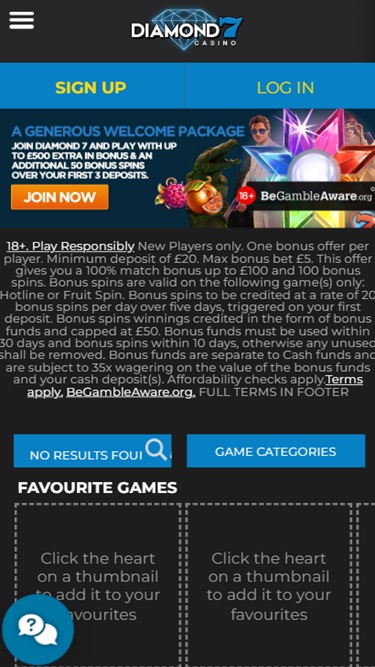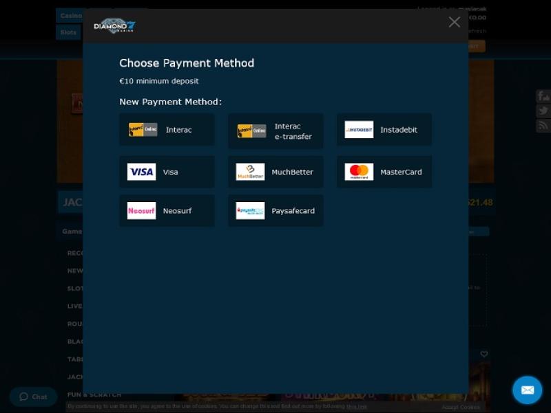 O Diamond7 Casino é um site de apostas online que abriu as suas portas em 2015. O casino possui licença no Reino Unido e serve o mercado de apostas europeu. Propriedade e operado pela Imperium Network Solutions Limited, o Diamond7 Casino tem recebido até agora avaliações positivas dos seus clientes, que elogiam o casino pela sua gestão sólida e biblioteca de jogos, embora alguns tenham reclamado do longo processo de levantamento de fundos.Informações do cassino