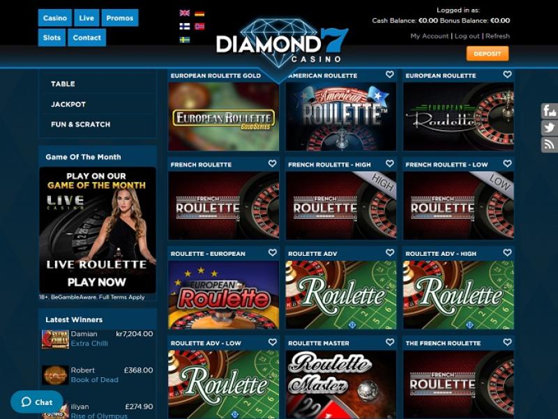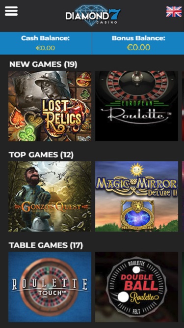 O Diamond7 Casino é operado pela Microgaming, Net Entertainment, 1x2gaming, Barcrest, Big Time Gaming, ELK Studios, Evolution Gaming, EYECON, Ezugi, lightningboxgames, Novomatic, Oryx, Play'n GO, Rabcat, Relax Gaming, Thunderkick, Wazdan, Realistic Games, Booming Games, Stakelogic, Pragmatic Play, Nolimit City, Felt Gaming, Red Tiger Gaming, IGT, Spinomenal, Fantasma Games, SYNOT Games, Kalamba, Revolver Gaming, Skywind, Spinmatic, Triple Edge Studios, BGAMING, Northern Lights Gaming, Stormcraft Studios, Electric Elephant Games, Pocket Games Soft, All41 Studios, Gameburger Studios, Pulse 8 Studios, Neon Valley Studios, Golden Rock Studios, Spearhead Studios, Swintt, SpinPlay Games, HungryBear Gaming, GONG Gaming, Blue Guru Games, Lady Luck Games, On Air Entertainment, Buck Stakes Entertainment, Design Works Gaming, Games Global, 2by2 Gaming, Ainsworth, Blueprint Gaming, Endemol Games, Greentube, Leander Games, Merkur Gaming, NextGen, Push Gaming, Tom Horn Gaming, Inspired Gaming, Gaming Realms, SG Interactive, Red7Mobile, Scientific Games, Reel Time Gaming, Authentic Gaming, Iron Dog Studio, Old Skool Studios, Foxium, Just For The Win, Storm Gaming Technology, PearFiction Studios, Apollo Games, Wild Streak Gaming, Slingshot Studios, Fortune Factory Studios, Jade Rabbit Gaming, 4ThePlayer, AvatarUX, Gamevy, Crazy Tooth Studio, NetGaming, High 5 Games, ReelPlay, AGS Interactive, Alchemy Gaming, Black Pudding Games, Snowborn Games, Hacksaw Gaming, Max Win Gaming, Gold Coin Studios, SilverBack Gaming, Peter And Sons, Eurostar Studios, Aurum Signature Studios, Armadillo Studios, Lucksome Gaming, Area Vegas, RAW iGaming, Leap Gaming, Wishbone Games, Spribe, Print Studios, HammerTime Games and Four Leaf Gaming , com jogos disponibilizados através de uma plataforma online. O casino também possui um site móvel para quem deseja jogar em seus tablets ou smartphones.Blackjack