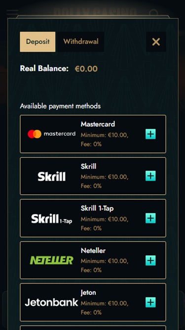 O cassino Dolly oferece diversos métodos bancários para depósitos e saques . Os jogadores podem acessar seu painel de controle e escolher entre uma ampla variedade de opções de pagamento disponíveis em sua região, incluindo criptomoedas, cartões de pagamento, carteiras eletrônicas e transferências bancárias.