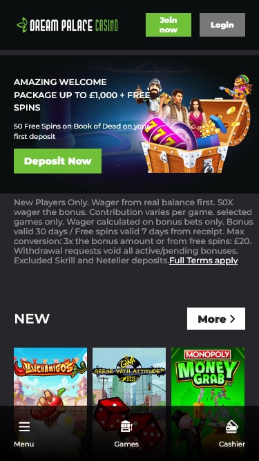 O Dream Palace Casino é um site de apostas online fundado em 2014, pertencente e operado pela ProgressPlay Limited. O cassino recebeu uma resposta muito positiva de seus clientes, que elogiam a vasta biblioteca de jogos e a gestão amigável do cassino. O site possui licenças em Malta e no Reino Unido, o que lhe confere autorização para operar em grande parte do continente europeu.Informações do cassino