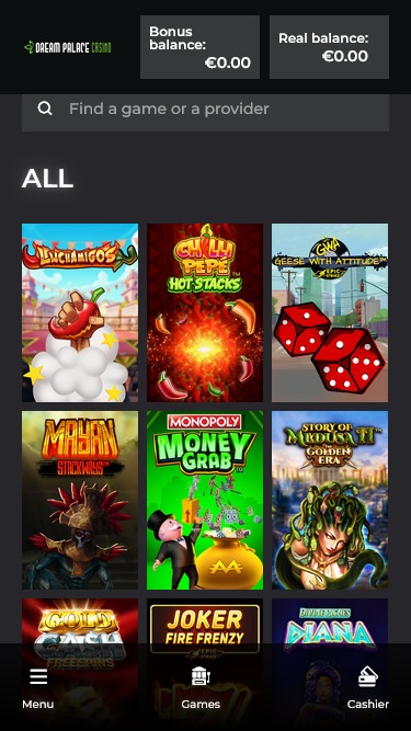 O Dream Palace Casino é alimentado por Microgaming, Net Entertainment, 1x2gaming, Barcrest, Big Time Gaming, ELK Studios, Evolution Gaming, EYECON, lightningboxgames, Play'n GO, Rabcat, Thunderkick, Nolimit City, Red Tiger Gaming, Spinomenal, Skywind, Triple Edge Studios, Northern Lights Gaming, Stormcraft Studios, Switch Studios, All41 Studios, Gameburger Studios, Pulse 8 Studios, Neon Valley Studios, Shuffle Master, SpinPlay Games, Real Dealer Studios, GONG Gaming, On Air Entertainment, Buck Stakes Entertainment, Games Global, Blueprint Gaming, NextGen, ProgressPlay, Tom Horn Gaming, WMS, Inspired Gaming, SG Interactive, Red7Mobile, CORE Gaming, Scientific Games, Reel Time Gaming, Iron Dog Studio, Old Skool Studios, Foxium, Just For The Win, PearFiction Studios, Slingshot Studios, Fortune Factory Studios, Gamevy, Crazy Tooth Studio, Alchemy Gaming, Black Pudding Games, Snowborn Games, Hacksaw Gaming, SimplePlay, Gold Coin Studios, Half Pixel Studios, Aurum Signature Studios and Lucksome Gaming , o que lhe confere uma biblioteca diversificada com centenas de jogos. O casino é acessível através de uma plataforma online e os jogadores também podem aceder ao site nos seus dispositivos móveis.Blackjack