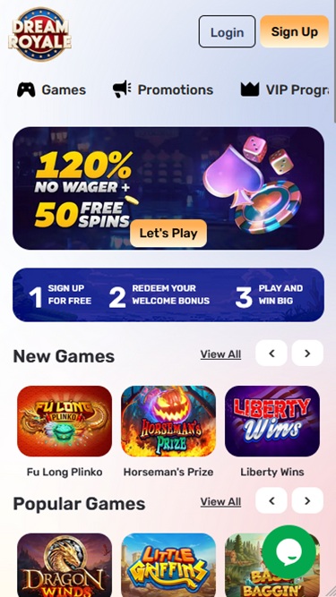 O site da Dream Royale não fornece muitas informações sobre extras como um clube VIP ou programa de fidelidade e, à primeira vista, você não encontrará uma aba dedicada ou uma explicação detalhada sobre o que os jogadores podem esperar em termos de recompensas de fidelidade ou benefícios a longo prazo.