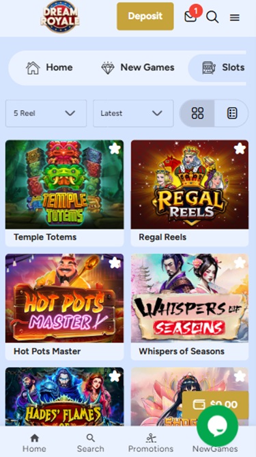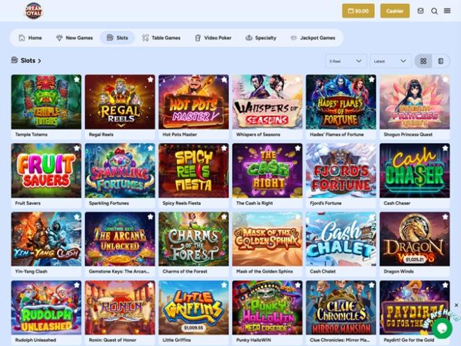 Na Dream Royal, é muito fácil navegar e descobrir novos jogos . Os jogadores podem pesquisar por diferentes parâmetros, seja por tipo de rolo, recursos especiais ou os lançamentos mais recentes.