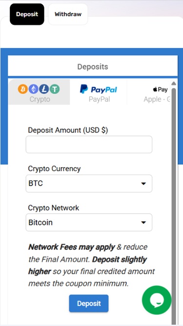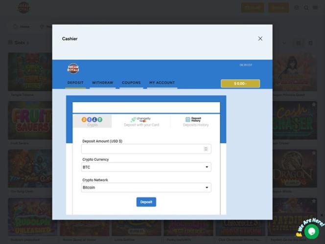 Aqui, as transações são processadas rapidamente, sem taxas, e os jogadores podem contar com moedas digitais e criptomoedas populares como Bitcoin, Ethereum, Tether, Litecoin...