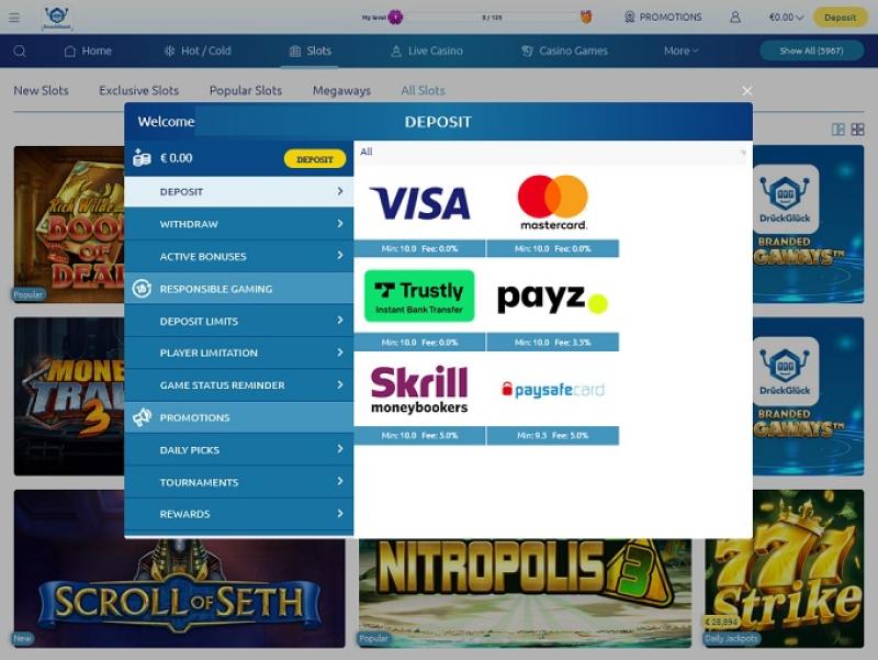 O sistema bancário é bastante sólido, com métodos de depósito e saque que incluem PayPal, Skrill, Neteller, Visa, SOFORT e muitos outros disponíveis a qualquer momento. Os prazos de pagamento são razoáveis, e os jogadores podem esperar que os valores depositados em carteiras eletrônicas sejam pagos no mesmo dia. Transferências bancárias e com cartão de crédito podem levar de 2 a 7 dias úteis para serem concluídas.