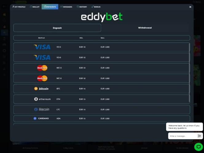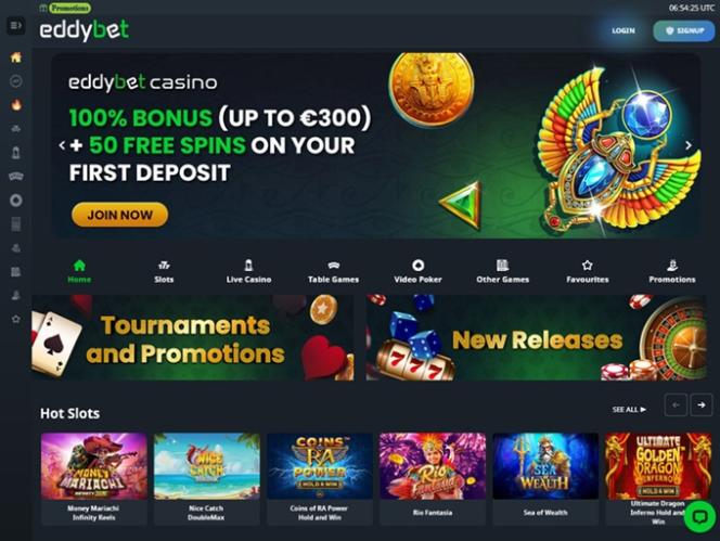 Enquanto aguardam o programa de fidelidade, o EddyBet Casino decidiu oferecer aos seus jogadores um material promocional bastante atraente, com diversas promoções e bônus para manter o interesse. Após criar sua conta, reivindique o bônus de boas-vindas, uma promoção que corresponde ao valor do seu depósito, criada para começar sua primeira sessão com estilo.