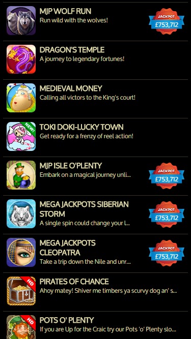 O Elite Mobile Casino é alimentado por IGT and Probability e os jogos do cassino são fornecidos por meio de uma plataforma baseada na web, que também opera o site móvel.Outros jogos