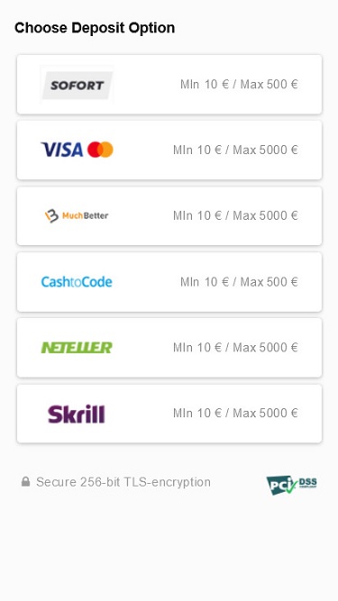 O cassino oferece suporte a métodos de pagamento confiáveis e amplamente utilizados pelos jogadores. É possível depositar fundos nas contas e sacar os ganhos utilizando cartões de pagamento, carteiras eletrônicas e transferências bancárias diretas.
