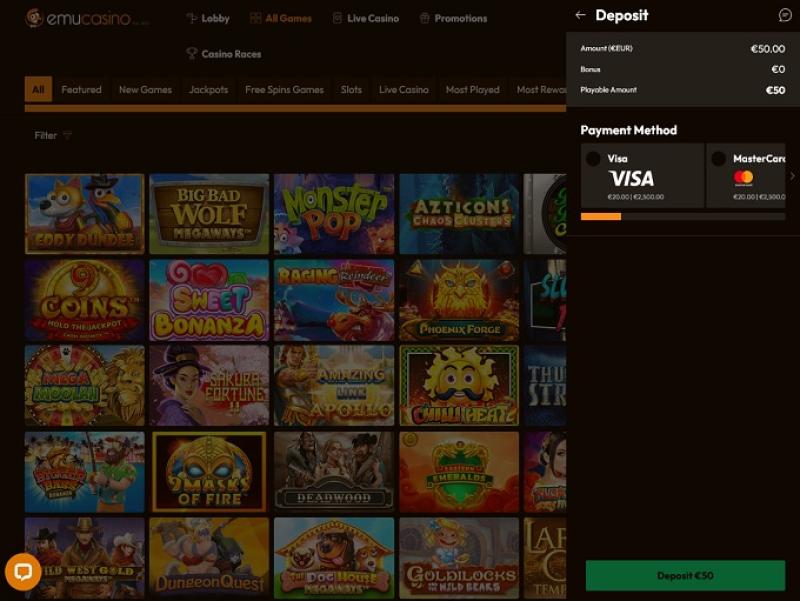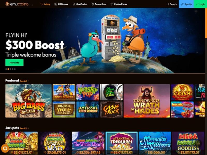 O Emu Casino é um site de apostas online que existe desde 2012. O cassino possui licença em Curaçao e pertence à Seasons Ever Ltd. O cassino é geralmente elogiado por seu programa de fidelidade, sua plataforma de jogos e sua excelente política de manter os fundos dos jogadores separados das contas operacionais da empresa.Informações do cassino