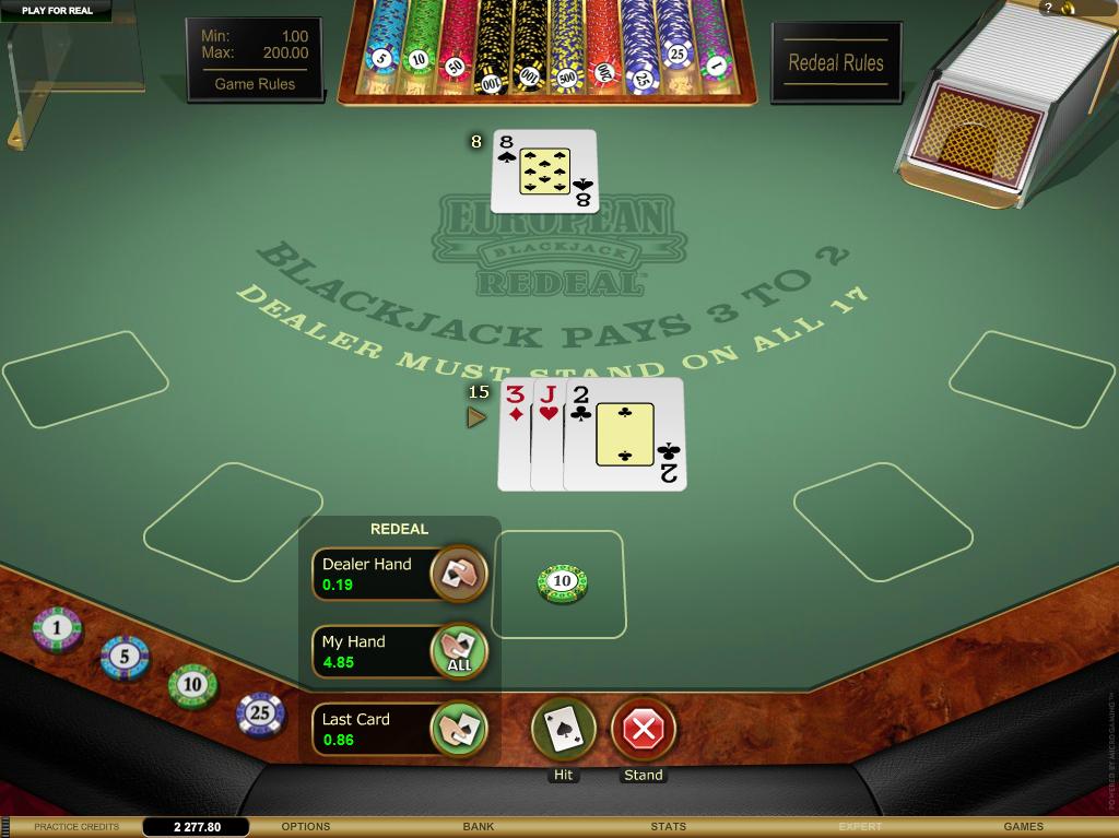 | European blackjack redeal | Ficar | Não | 9 a 11 | 1 | Não | Sim | Não | Não | 99.60% | 2 | Não |