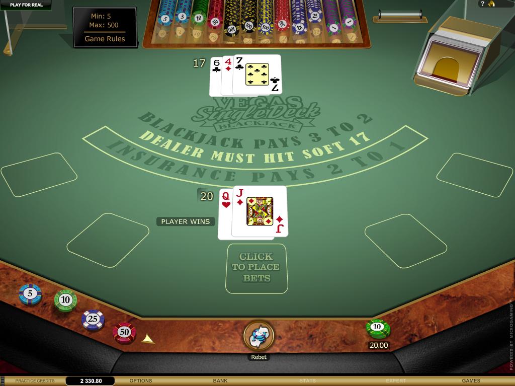 | Vegas single deck | Bater | Não | 9 a 11 | 1 | Não | Não | Sim | Não | 99.69% | 1 | Não |
