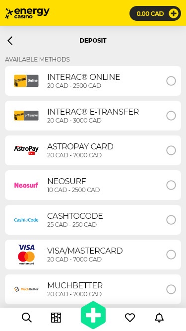 Abaixo está uma lista das promoções atualmente oferecidas no EnergyCasino.