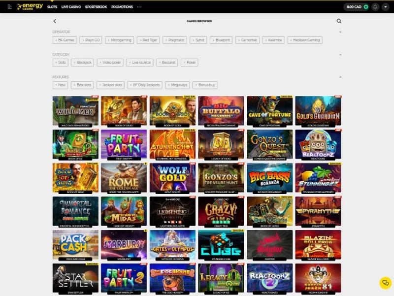 O EnergyCasino é alimentado por Microgaming, Net Entertainment, 1x2gaming, Big Time Gaming, ELK Studios, Evolution Gaming, EYECON, Ezugi, Novomatic, Oryx, Play'n GO, playson, Relax Gaming, Thunderkick, Wazdan, Betgames, Booming Games, Stakelogic, Pragmatic Play, Nolimit City, Red Tiger Gaming, Spinomenal, Red Rake Gaming, Fantasma Games, SYNOT Games, Kalamba, Spin Games, Skywind, Spinmatic, Triple Edge Studios, Stormcraft Studios, Switch Studios, Electric Elephant Games, Pocket Games Soft, Bulletproof Games, All41 Studios, Gluck Games, Gameburger Studios, Slot Factory, Neon Valley Studios, Swintt, SpinPlay Games, HungryBear Gaming, Blue Guru Games, On Air Entertainment, Holle Games, Buck Stakes Entertainment, Games Global, Wizard Games, 2by2 Gaming, Ainsworth, bluberi, Blueprint Gaming, GamesOS, Greentube, Leander Games, Merkur Gaming, Pariplay, Gamomat, Reel Time Gaming, BF Games, Bally Wulff, Iron Dog Studio, Foxium, Just For The Win, Storm Gaming Technology, PearFiction Studios, Wild Streak Gaming, Slingshot Studios, Golden Hero, Fortune Factory Studios, Jade Rabbit Gaming, Green Jade Games, STHLM Gaming, RubyPlay, 4ThePlayer, Gamevy, Crazy Tooth Studio, NetGaming, High 5 Games, Japan Technicals Games, Alchemy Gaming, Black Pudding Games, Snowborn Games, Hacksaw Gaming, Max Win Gaming, Gold Coin Studios, Half Pixel Studios, Slotmill, SilverBack Gaming, Peter And Sons, Lucksome Gaming, Area Vegas, RAW iGaming, Leap Gaming, LiveG24, Atomic Slot Lab, Indigo Magic and Sneaky Slots , o que lhe confere uma excelente biblioteca de jogos de cassino. O EnergyCasino é acessível através de uma plataforma online, permitindo que os jogadores joguem pelo navegador. Um site para dispositivos móveis também está disponível para quem deseja jogar em qualquer lugar.Blackjack