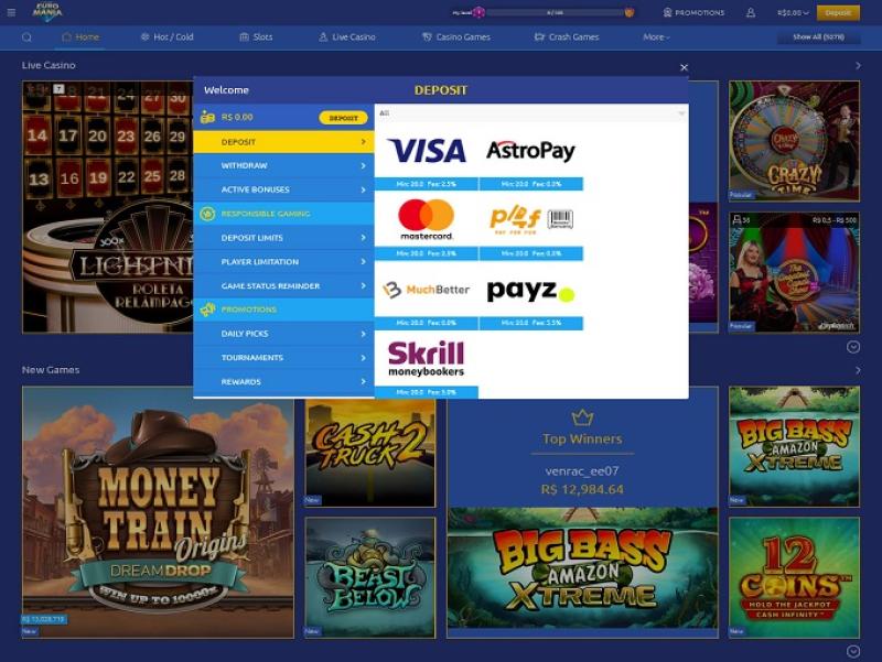 EuroMania é um site de apostas online fundado em 2016 e operado sob a jurisdição de Curaçao. O site parece oferecer um grande número de jogos de desenvolvedores renomados e também possui bons termos de bônus, o que é parcialmente compensado por um tempo de processamento de 48 horas para saques e prazos que podem chegar a 7 dias úteis para pagamentos.