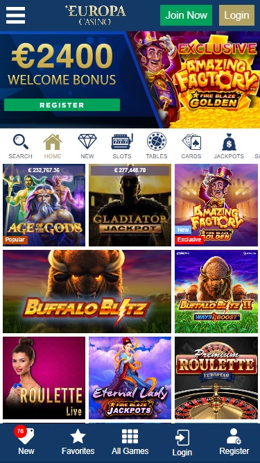 O Europa Casino existe desde 2003 e pertence à mesma empresa que o Winner Casino, sendo também por ela operado. Infelizmente, os casinos deste grupo têm sido a origem de muitos jogadores insatisfeitos.