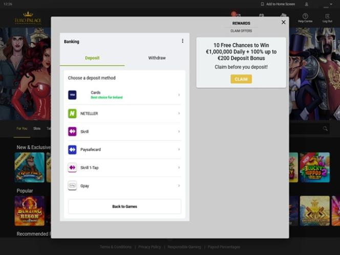 O Euro Palace Casino é operado pela Microgaming, Evolution Gaming, Rabcat, Pragmatic Play, Triple Edge Studios, Northern Lights Gaming, Stormcraft Studios, Switch Studios, Electric Elephant Games, All41 Studios, Gameburger Studios, Pulse 8 Studios, Neon Valley Studios, SpinPlay Games, Real Dealer Studios, GONG Gaming, On Air Entertainment, Buck Stakes Entertainment, Games Global, Old Skool Studios, Foxium, Just For The Win, PearFiction Studios, Slingshot Studios, Fortune Factory Studios, Crazy Tooth Studio, Alchemy Gaming, Snowborn Games, Gold Coin Studios, Half Pixel Studios, Eurostar Studios, Aurum Signature Studios and Area Vegas , que oferece centenas de jogos de cassino diferentes, além de uma plataforma de jogos robusta. Os jogadores podem acessar o cassino pelo site do Euro Palace ou por meio de um software para download, que instala o cliente do cassino diretamente no computador. Ambas as plataformas são praticamente idênticas e não há nenhuma vantagem real em escolher uma em detrimento da outra. Há também um cassino móvel disponível para aqueles que desejam jogar no computador ou dispositivo móvel.