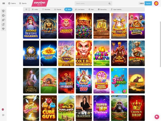 O Evolve Casino é alimentado por Microgaming, Net Entertainment, BetSoft, 1x2gaming, Big Time Gaming, ELK Studios, Evolution Gaming, Ezugi, Habanero Systems, iSoftBet, Novomatic, Oryx, Play'n GO, Quickspin, Relax Gaming, Thunderkick, Vivo Gaming, Yggdrasil, Endorphina, Wazdan, GameArt, Booming Games, PlayPearls, Pragmatic Play, Nolimit City, Felt Gaming, Red Tiger Gaming, Booongo, Spinomenal, Felix Gaming, Fugaso, Fantasma Games, Kalamba, Revolver Gaming, Spinmatic, Spadegaming, Northern Lights Gaming, Fazi, Evoplay, Stormcraft Studios, Switch Studios, Pocket Games Soft, Triple PG, Bulletproof Games, All41 Studios, Gluck Games, Pulse 8 Studios, Neon Valley Studios, Golden Rock Studios, Swintt, Woohoo Games, SpinPlay Games, HungryBear Gaming, Qora Games, SmartSoft Gaming, GONG Gaming, On Air Entertainment, Buck Stakes Entertainment, Caleta Gaming, Games Global, Reevo, Amusnet Interactive, Wizard Games, Blueprint Gaming, Greentube, Pariplay, Push Gaming, Tom Horn Gaming, Gamomat, Mr Slotty, Reel Time Gaming, BF Games, betiXon, Bally Wulff, Iron Dog Studio, Old Skool Studios, Foxium, Just For The Win, Reflex Gaming, PearFiction Studios, Wild Streak Gaming, Slingshot Studios, Fortune Factory Studios, AvatarUX, Gamevy, Crazy Tooth Studio, ReelPlay, SlotVision, Alchemy Gaming, Snowborn Games, Boomerang Studios, Hacksaw Gaming, Max Win Gaming, Gold Coin Studios, Bang Bang Games, Half Pixel Studios, SilverBack Gaming, Peter And Sons, Aurum Signature Studios, FastSpin, Lucksome Gaming, Area Vegas, 3 Oaks Gaming, Wishbone Games, Spribe, Circular Arrow, Print Studios, HammerTime Games, INO Games, Nailed It! Games, Neko Games and Oros Gaming e os jogos do casino são executados numa plataforma online que carrega diretamente no seu navegador. Não há qualquer software para descarregar. O site é atraente e fácil de navegar, e pode aceder ao mesmo no seu smartphone ou tablet, se desejar.Blackjack