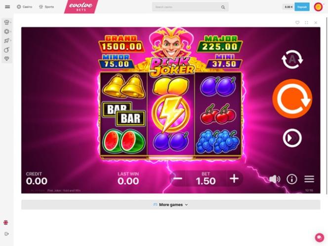 O Evolve Casino é um site de apostas online operado pela Mountberg Limited. O cassino oferece uma grande variedade de jogos e promoções interessantes para incentivar a participação. Há muitos pontos positivos, incluindo um excelente programa VIP (para quem se qualifica), requisitos de apostas razoáveis para bônus e cashback toda segunda-feira. Infelizmente, o tempo de processamento de 48 horas para ganhos e os baixos limites de saque mensais impedem que o Evolve seja considerado um site de apostas de elite.Informações do cassino
