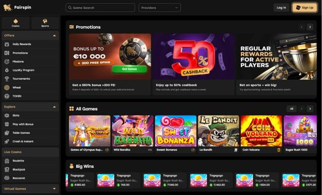 Jogadores mais frequentes podem contar com bônus semanais de depósito e bônus ocasionais sem depósito, rodadas extras e cashback, além de bônus de aniversário e diversos torneios de cassino. Lembre-se de que os bônus sem depósito vêm com requisitos de aposta relativamente altos, e os Termos e Condições se aplicam a todas as ofertas promocionais do Fairspin Casino.